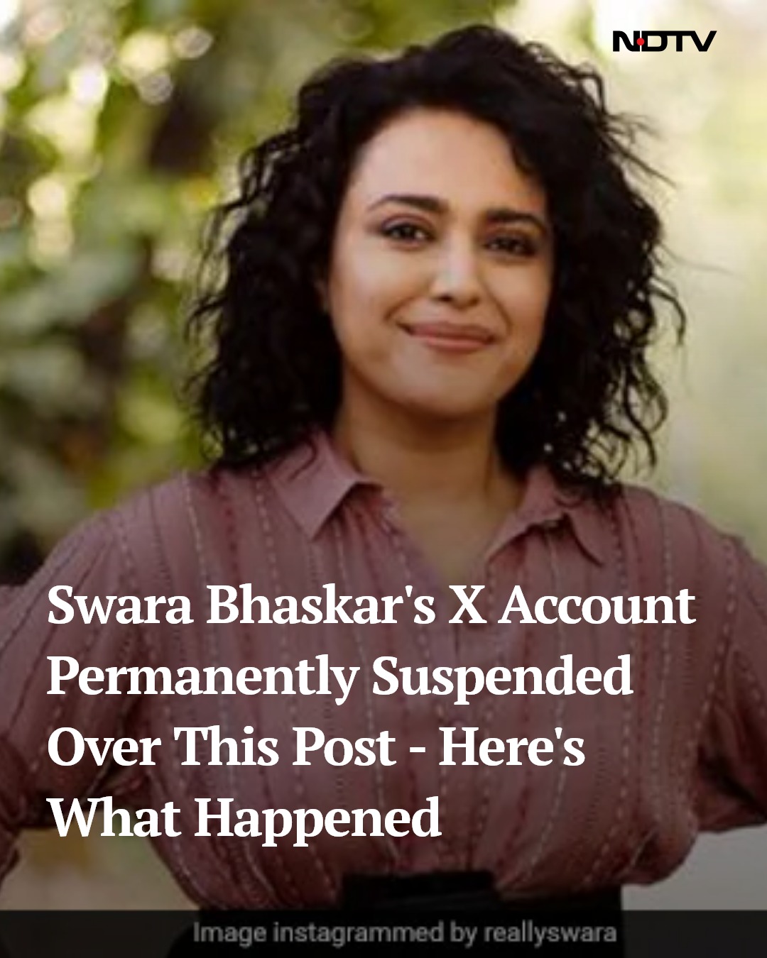 Bollywood actress Swara Bhaskar has landed in yet another social media controversy after her X (formerly Twitter) account was permanently suspended. The actress took to Instagram to announce the suspension, calling the decision “ridiculous and untenable.”