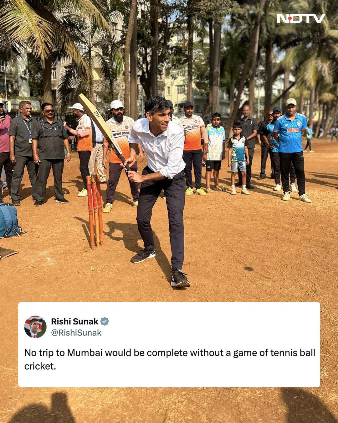 Mumbai: Former British Prime Minister Rishi Sunak made a spirited visit to Mumbai on Sunday, where he indulged in a game of tennis ball cricket at the iconic Parsee Gymkhana. Expressing his excitement, Sunak remarked that no trip to Mumbai is complete without cricket, sharing his experience on social media.