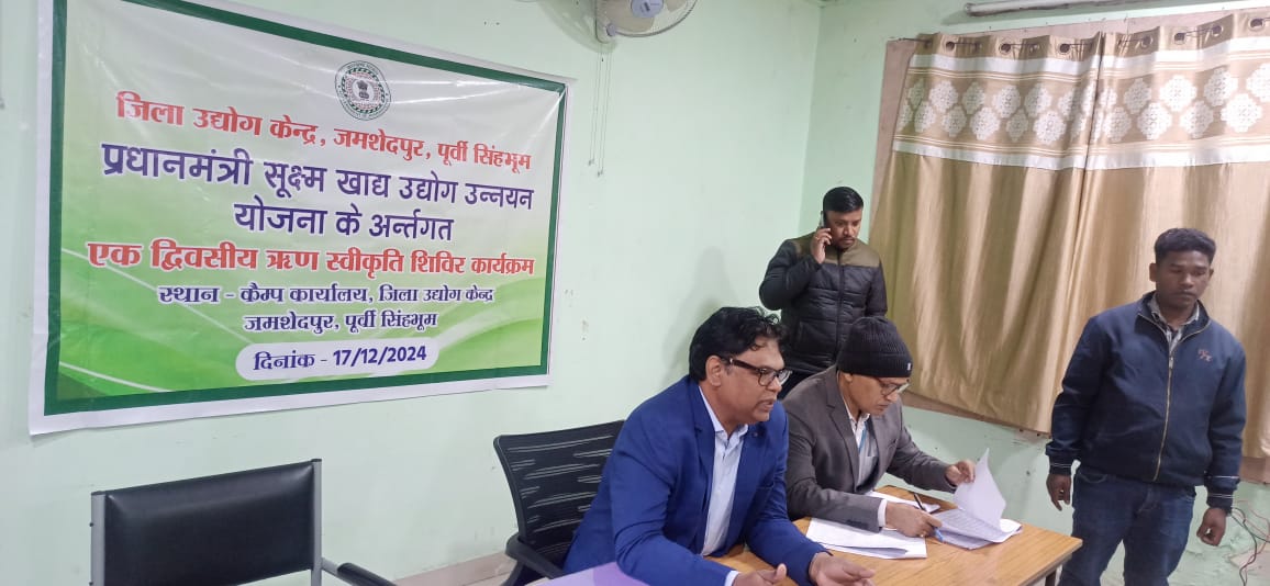 जमशेदपुर: छोटे और सूक्ष्म उद्यमियों को प्रोत्साहन देने और आत्मनिर्भर भारत अभियान को सशक्त बनाने के उद्देश्य से जिला उद्योग केंद्र के कैंप कार्यालय, जमशेदपुर में प्रधानमंत्री फॉर्मलाइजेशन ऑफ माइक्रो फूड प्रोसेसिंग एंटरप्राइजेज (PMFME) योजना के तहत एक दिवसीय ऋण स्वीकृति शिविर का आयोजन किया गया।