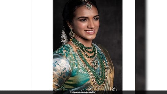 बैडमिंटन स्टार पीवी सिंधु वेंकट दत्ता साईं पॉसाइडेक्स टेक्नोलॉजीज के कार्यकारी निदेशक के साथ शादी के बंधन में बंध गई. बैडमिंटन कोर्ट पर अपनी प्रतिभा दिखाने के अलावा, स्टार खिलाड़ी पीवी सिंधु मैदान के बाहर भी सुर्खियां बटोरना जानती हैं. यह बात उनके संगीत समारोह की शानदार तस्वीरों से स्पष्ट हो गई.पीवी सिंधु को अबू जानी संदीप खोसला द्वारा डिज़ाइन की गई बैकलेस वाली आकर्षक पन्ना हरे रंग की गाउन पहने देखा गया. यह पोशाक परिष्कार, आकर्षण और दुल्हन के सार का एक उत्कृष्ट मिश्रण थी.